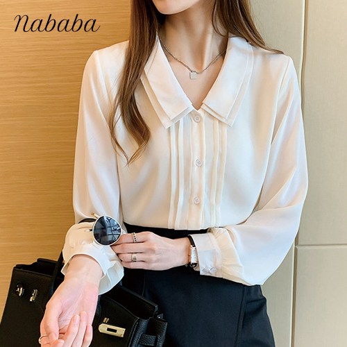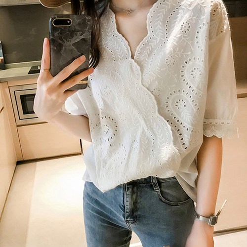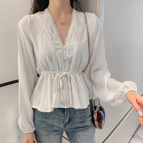 나바바 NB268 여성 레이스 더블 카라 쉬폰 블라우스