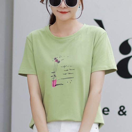 순 면 반팔 티 여 트랙 반 소매 티셔츠 여름 센스 그린 탑
