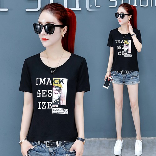 여름 반팔 티 여 루즈 하프 썸머 반 소매 상의 옷
