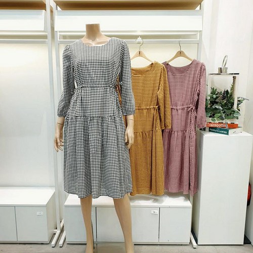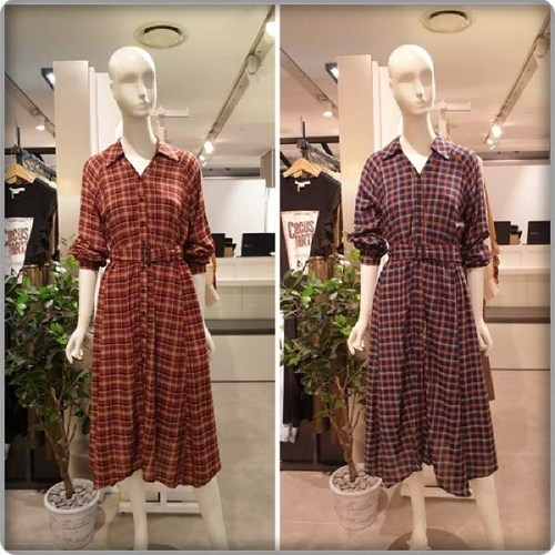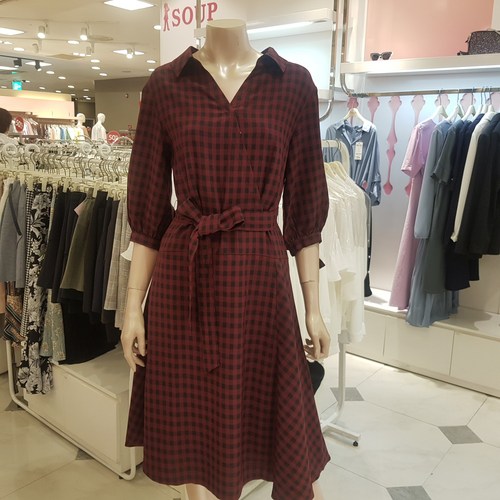 [현대백화점]숲 SOUP (SW8OP87) 체크패턴 스탠변형 원피스