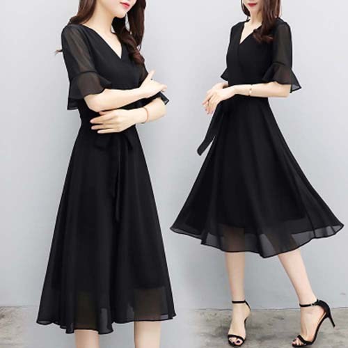 시크힐즈 쉬폰 반팔 원피스 PLA683