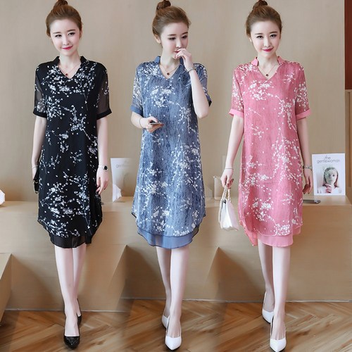 Joyce shop 오래달리기 꽃 원피스 여성 여름 쉬폰 플라워
