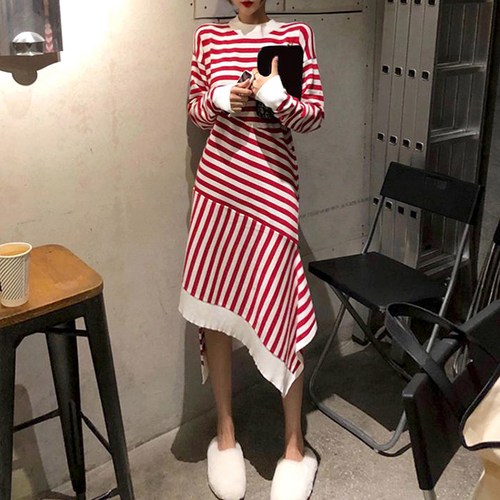 대박난박양 니트 스트라이프 긴팔 언발원피스