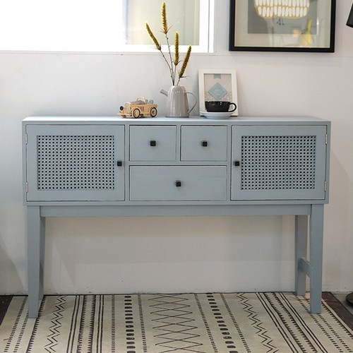 [디모토] 1200 라탄 콘솔 화장대 다용도 수납장 (스카이그레이), 스카이그레이