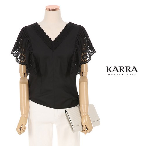KARRA 다이시펀칭브이넥블라우스_KB0MBL077C