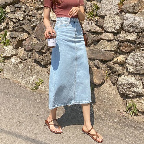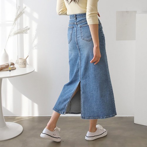 바잉몰 여성 포미 뒷트임 청치마 데님롱 스커트