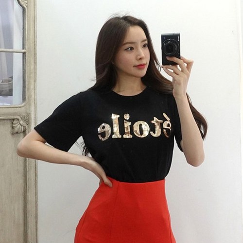 이힝 여성용 애투왈르 레터링 반팔 티셔츠