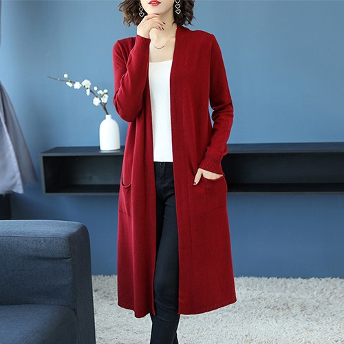 빼빼 여성용 부드러운 착용감 브이넥 니트 롱 가디건