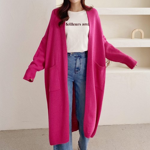 [아이엠수]바비 포켓 오픈 니트 롱가디건