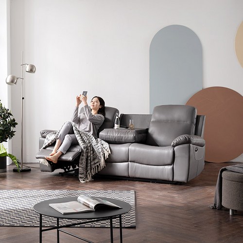 삼익가구 오브 3인용 4인용 가죽 리클라이너 소파_모음, 01. 3인 리클라이너 소파:그레이