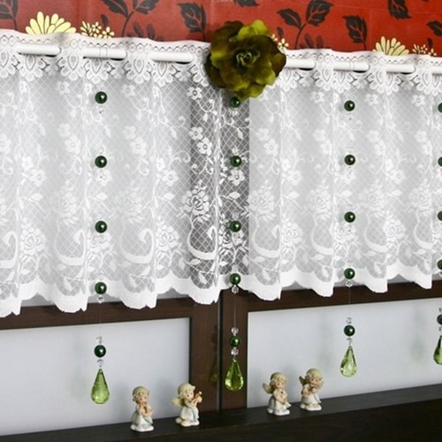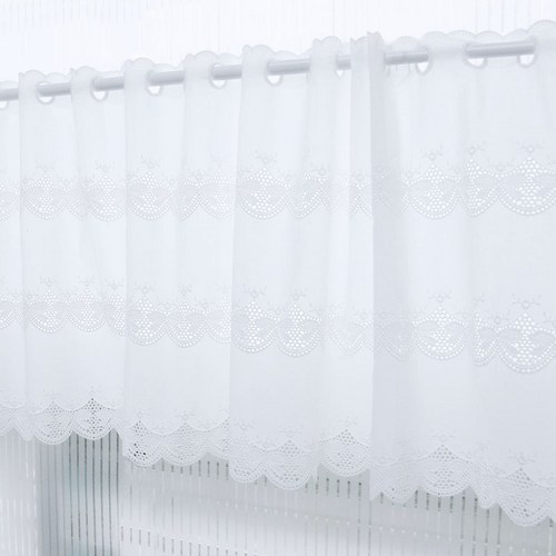 우리앤데코 프랑스 꽃자수 레이스 주방커튼, 화이트