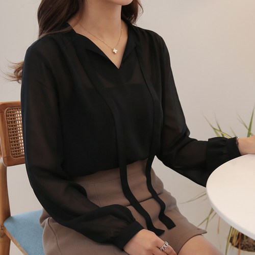 나바바 NB274 여성 브이넥 봄 가을 긴소매 쉬폰 블라우스