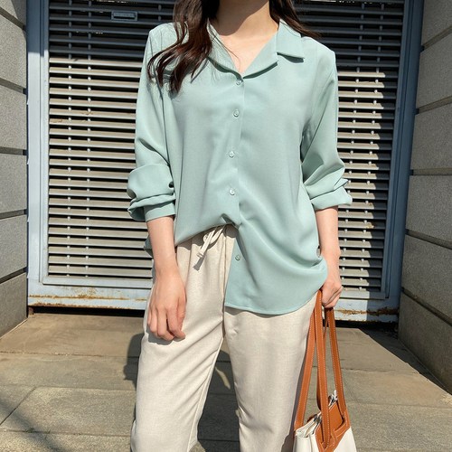 빼빼 소매셔링 카라넥 베이직 긴팔 블라우스