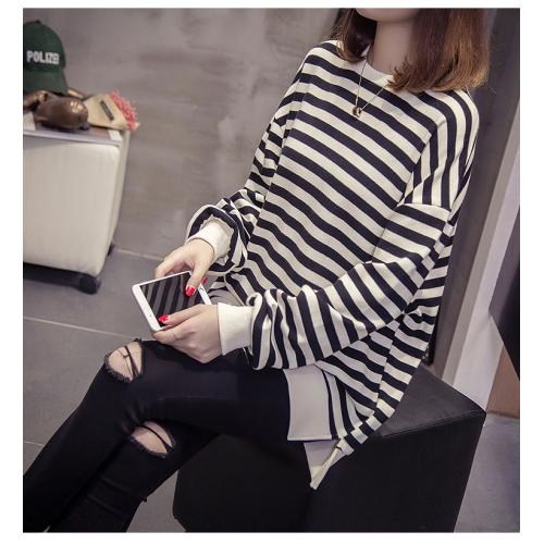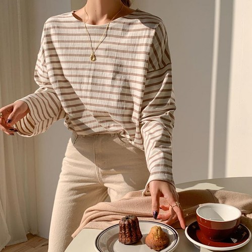 오키진 여성용 스트라이프 데일리 긴팔 티셔츠