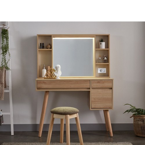 [삼익가구]보이스 멀티수납형 원목 화장대 세트(스툴포함), 내추럴