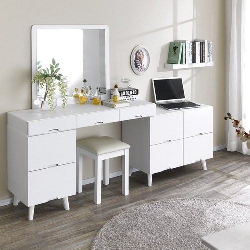퍼니아트 화장대 + 원목의자 세트 ga-005, 화이트