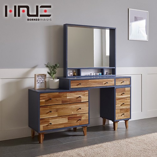 보루네오하우스 프라임 하루 아카시아 화장대세트 FO6410 착불, 네이비+아카시아