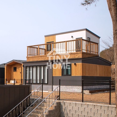 [주식회사 작은집] 이동식주택 36.58평 (썬샤인) 목조주택, 철제난간 목재난간