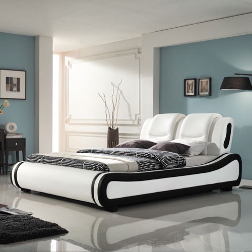 젠티스 비쥬 가죽 퀸 침대 세트, 화이트 + 블랙, 프레임 + 참숯 콤포트 매트리스
