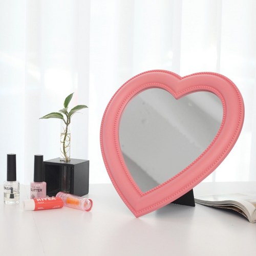 하트 러블리거울 탁상용 화장대 벽걸이 인테리어 거울, 핑크