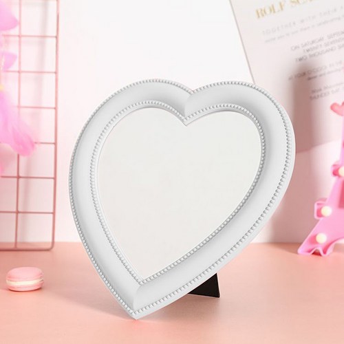 히든템 하트거울 핑크 하트 탁상 화장대 거울, 화이트