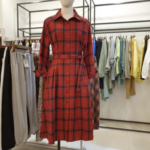 [반에이크] 체크 슬림턱 롱 셔츠 원피스(VA9XOPMD02A)