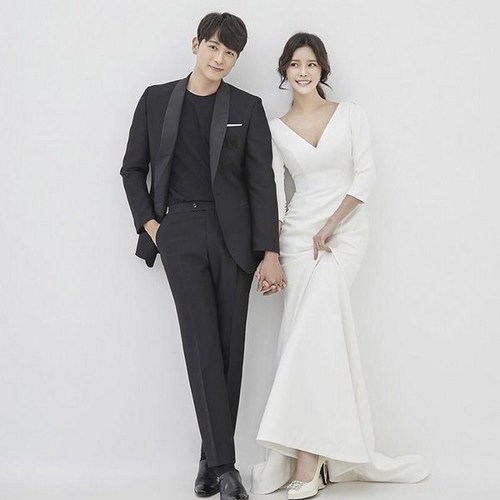 새틴 라이트 셀프 웨딩 드레스 브이넥 피쉬테일 드레스 웨딩촬영