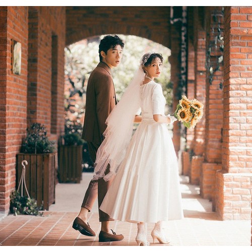 천사 엔젤 결혼 여행 신혼 세미 야외 드레스 짧은 웨딩 드레스 셀프 스몰 579