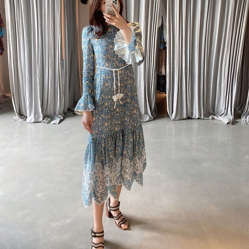써스데이 아일랜드 여성 복고풍 원피스 자수 미디 레이스 면원피스
