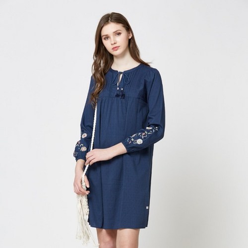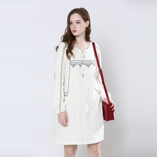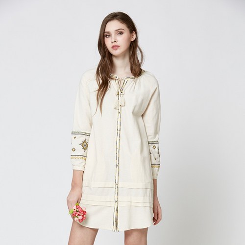 써스데이 아일랜드 여성 레이스 원피스 자수 미니 린넨