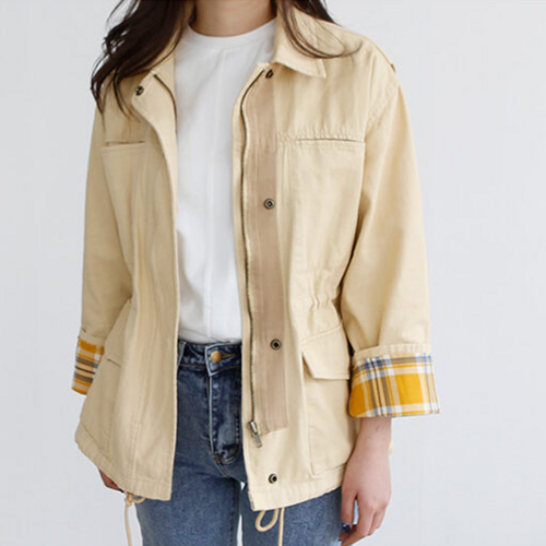 MOCOCCO 소매 체크배색 점퍼 야상 간절기 야상
