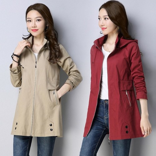 칠나무 여성 하프 후드 점퍼 트렌치 코트 빅사이즈