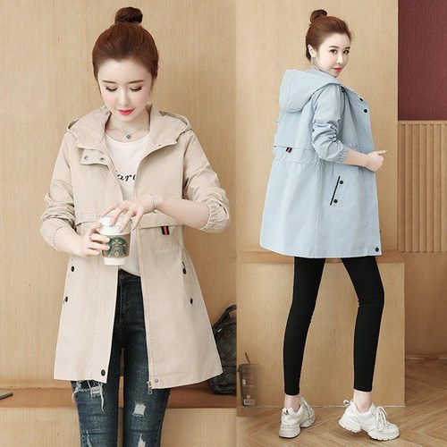 CNH 여자 여성 봄 가을 타이트 후드 롱 야상 점퍼 자켓