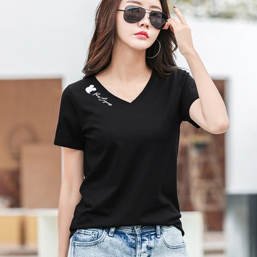 데일로엔 여성용 무지 브이넥 반팔 티셔츠 1413