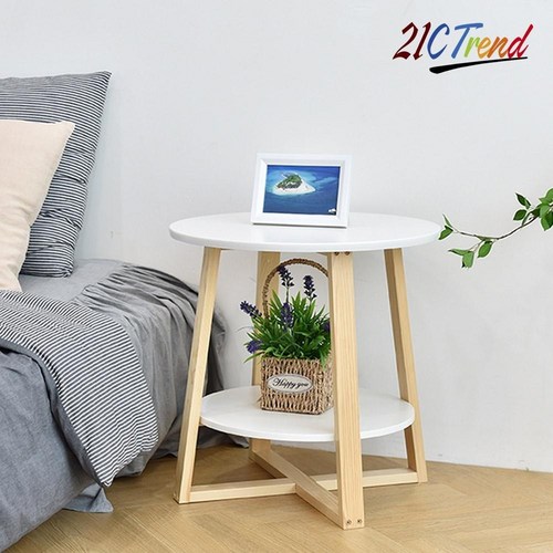 21세기트랜드 원형 2단 다용도테이블 좌탁/티테이블, 화이트