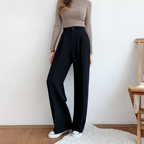 빼빼 여성용 하이웨스트 데일리 핀턱 와이드 슬랙스