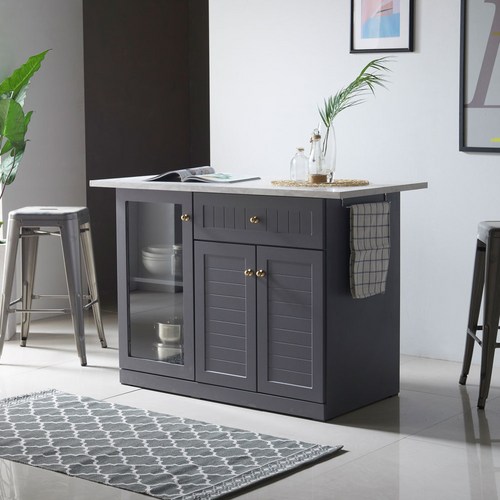 한스리빙 스톤 아일랜드 홈바 식탁 1200, 그레이(본체)/대리석패턴(상판)