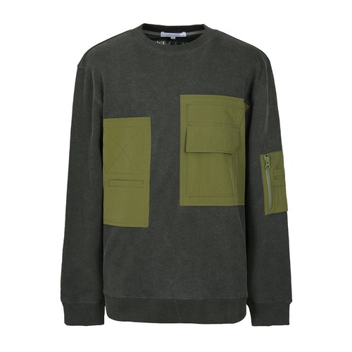 리버클래시 가먼트워싱 배색 포켓 맨투맨티 LGW41523DG