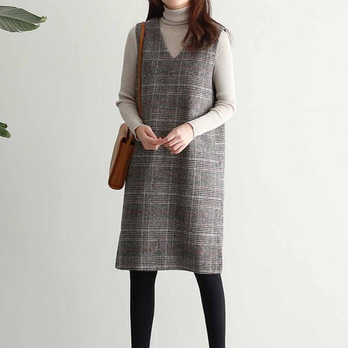 루나스 가을 겨울 체크 모직원피스 조끼원피스 멜빵원피스 c28