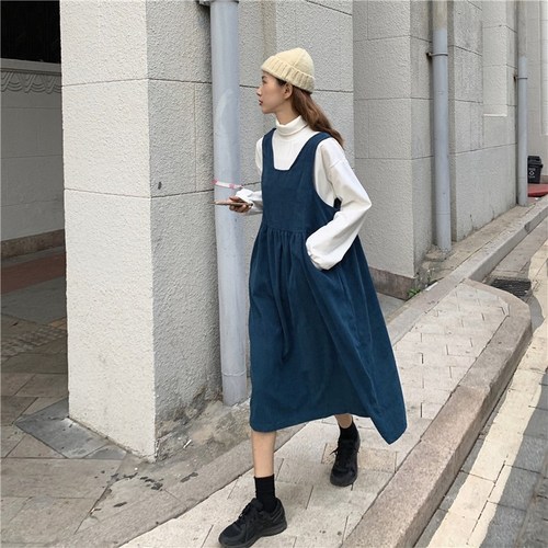 kirahosi 가을 겨울 코듀로이 멜빵 치마 박시핏 골덴 원피스 181호+덧신증정 BGiyssgt
