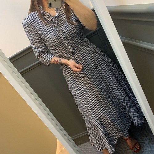 시슬리 넥프릴 체크 롱 원피스 SAOPD7031