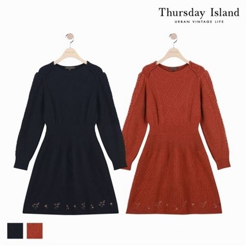써스데이아일랜드 여성 피셔맨 핏앤플레어 니트원피스 T188MOP248W