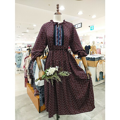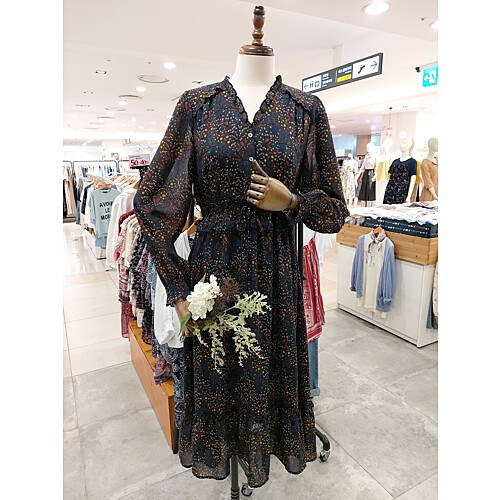 [써스데이아일랜드] 플라워 패턴 쉬폰 롱 원피스 T196MOP140W