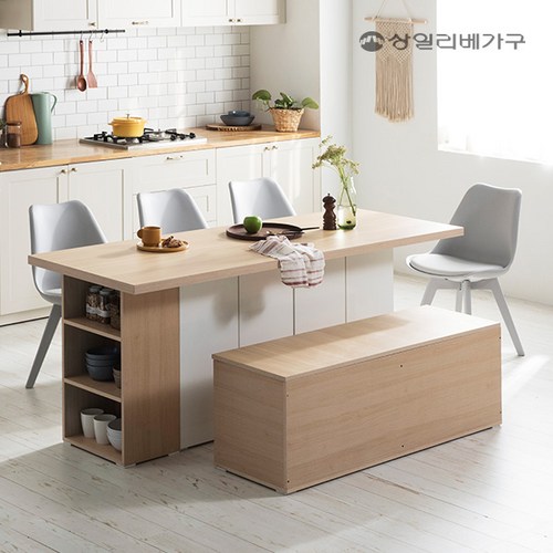 상일리베가구 일마레 아일랜드 2인 4인 6인 수납 아일랜드식탁, 추가구성2] 1200 수납벤치[대]_메이플