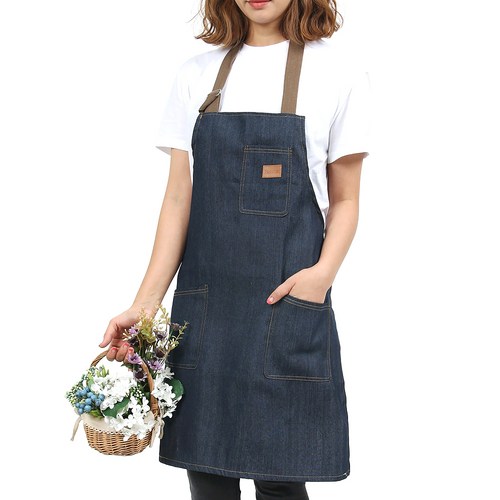 제이앤제이 데님 스트랩 청앞치마, 블루, 1개