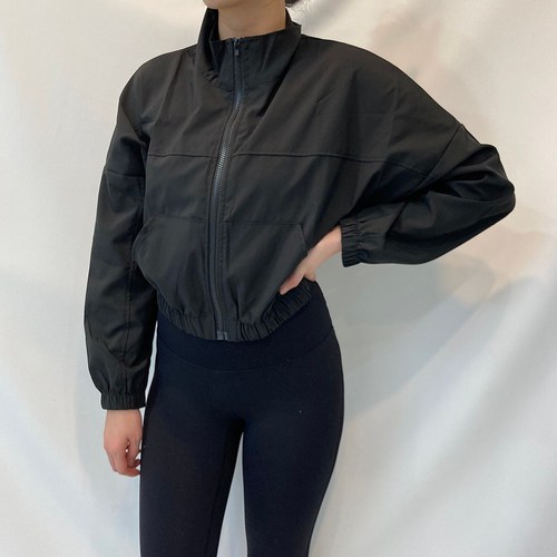 VANANA2 여성용 크롭 블랙 바람막이 점퍼