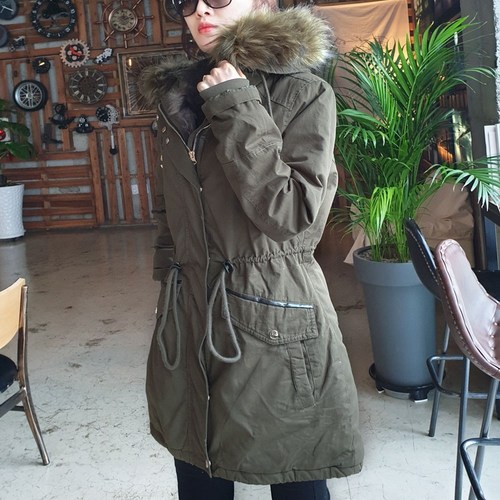 타오사랑 허리밴딩 더블 포켓 후드 롱 야상점퍼 TL584