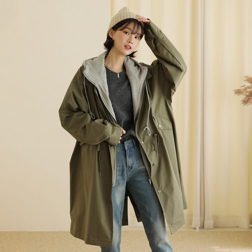 빼빼 여성용 루즈핏 레이어드 후드집업 야상 자켓 점퍼