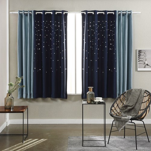 네추럴 린넨필 트윙클 펀칭 암막커튼, 미드나잇 블루