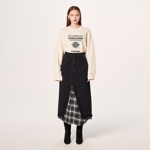 쥬시쥬디 J 체크 원단 믹스 데님 스커트 JTSK721B
